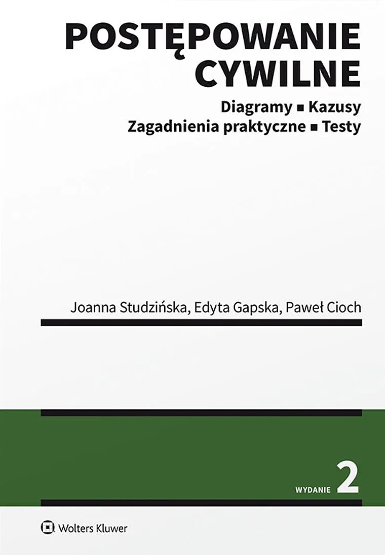 Postępowanie cywilne : diagramy, kazusy, zagadnienia praktyczne, testy / Joanna Studzińska, Edyta Gapska, Paweł Cioch. - Wydanie 2, stan prawny na 6 marca 2020 r. - Warszawa : Wolters Kluwer, 2020. - 548 stron : wykresy ; 24 cm.