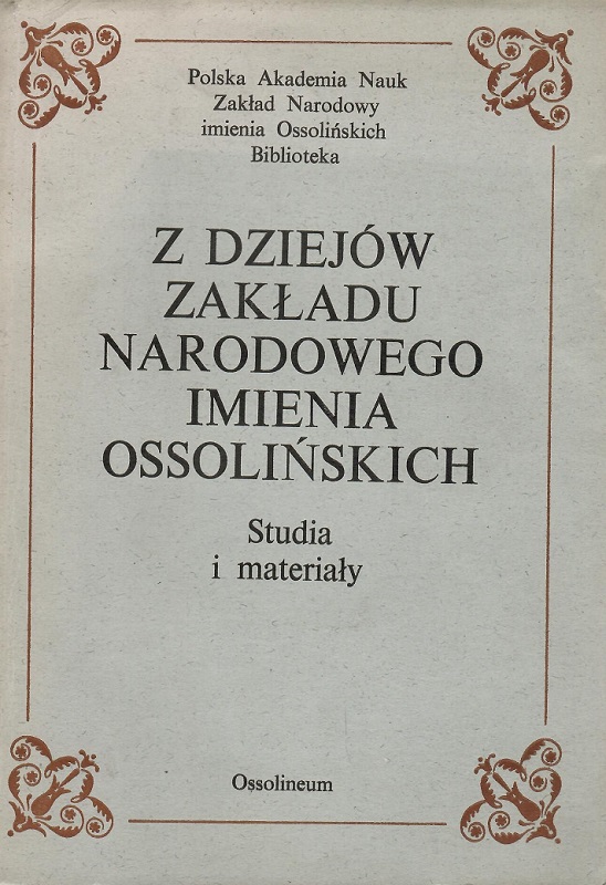 Instytucja sprawcza : Polska Akademia Nauk Zakład Narodowy im. Ossolińskich. Biblioteka.